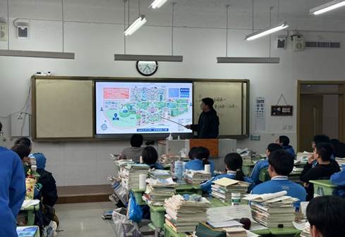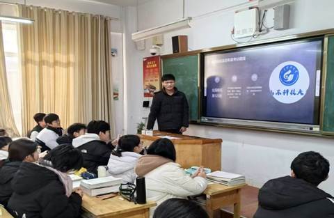 新能源科学与工程2024-1班王主玉在潍坊四中开展宣讲。围绕新工科人才培养展开研讨; 通过播放《山科24小时》纪实视频,展现真实的大学生活图景;曾经的他因害羞不敢举手发言,如今却站在高中教室的讲台上,从容分享大学生活:从实验室的科研日常到辩论赛的精彩瞬间,从凌晨图书馆的灯火到运动场上的欢呼。