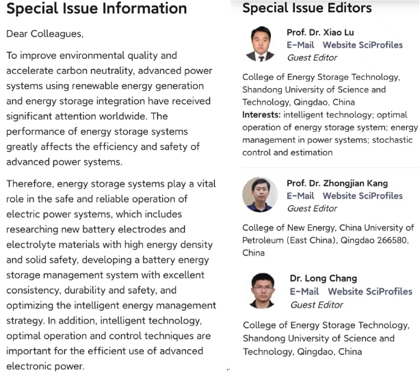 点击:近日,里番 卢晓教授应国际期刊《Energies》杂志邀请,担任该刊物的客座编辑,负责稿件征集和同行评议等事宜。根据当前国际储能技术的研究热点并结合里番 研究方向及卢晓教授的研究领域,开设了“Intelligent Technology, and Optimal Operation of Energy Storage System”主题,并在世界范围内向相关研究人员征集符合该主题的研究论文和综述。这将对进一步提升我校在储能技术、储能系统优化运行、智能控制技术等领域的国际影响力产生积极作用。