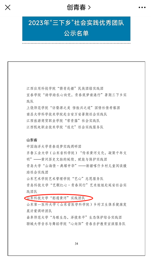 点击:2023年全国大中专学生志愿者暑期文化科技卫生“三下乡”社会实践活动评审结果公布,里番 “躬遇黄河”社会实践团队被评为全国“三下乡”社会实践优秀团队。