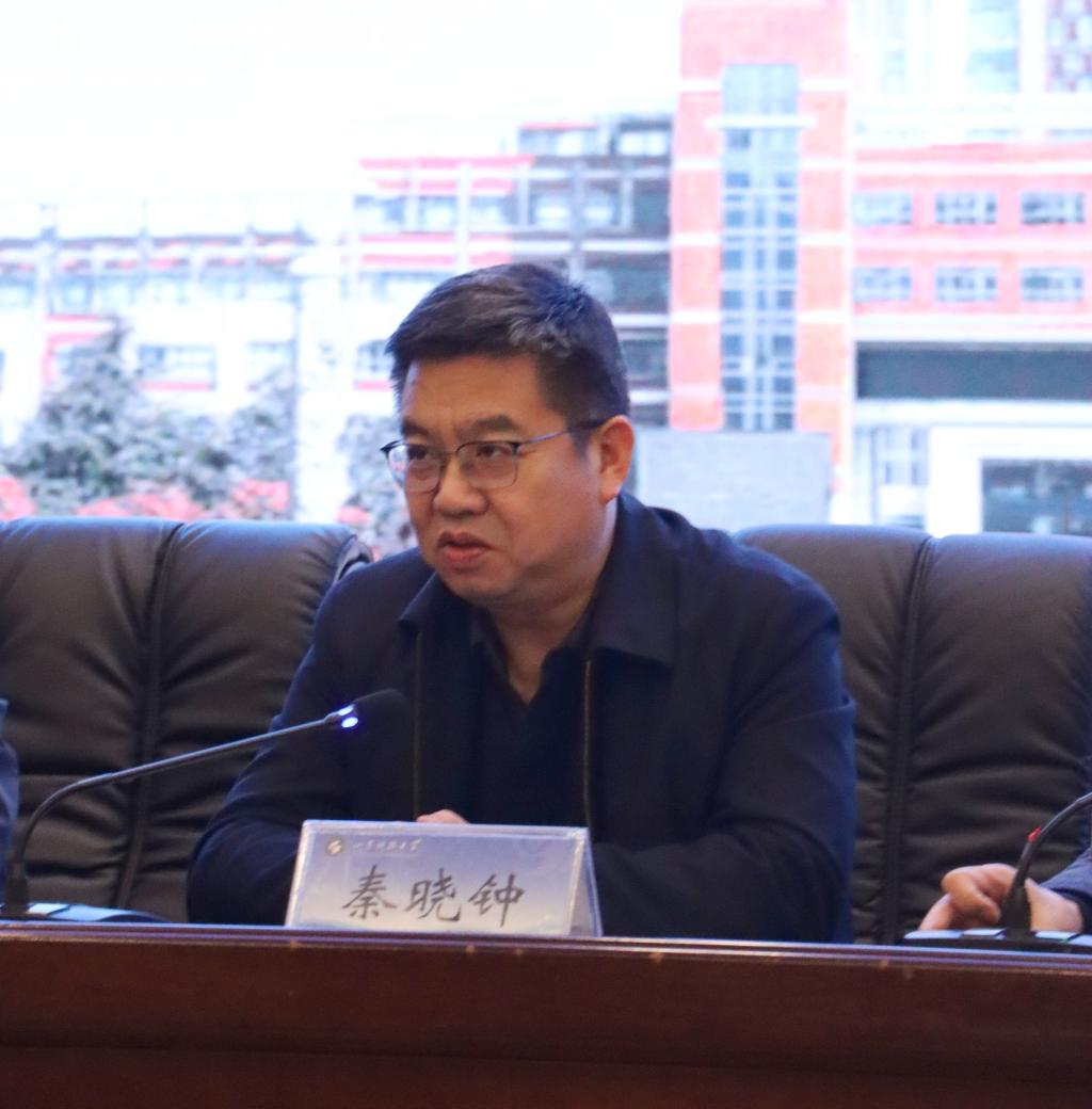 秦晓钟在讲话中肯定了学院2023年就业工作取得的成绩,对做好2024年就业工作提出了要求,对毕业生树立正确的就业观和择业观进行了指导。